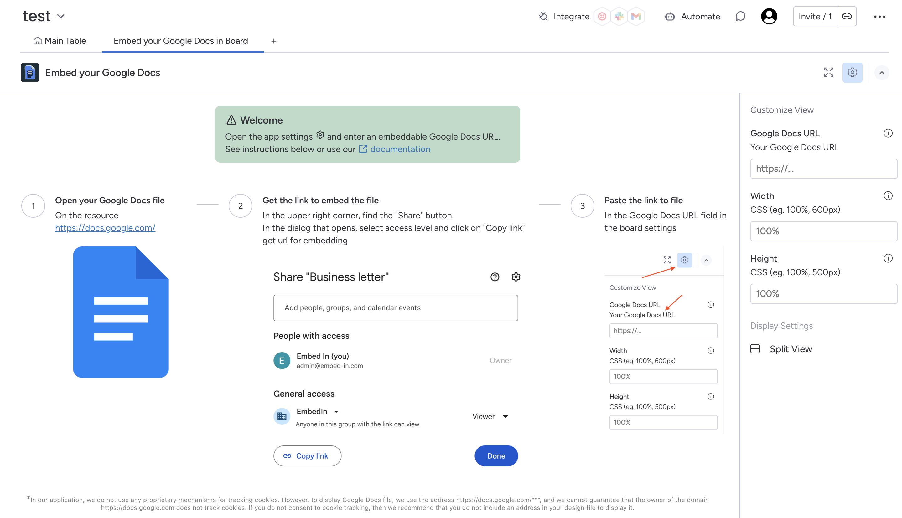 Embed Google Docs in Board