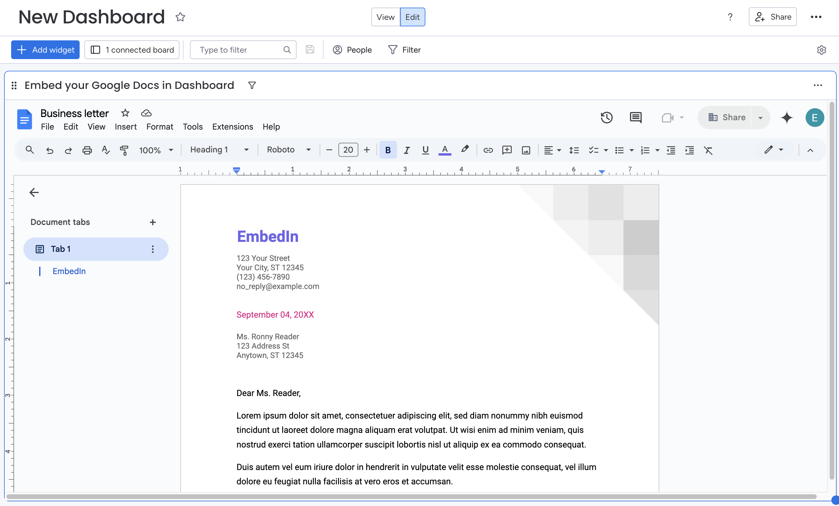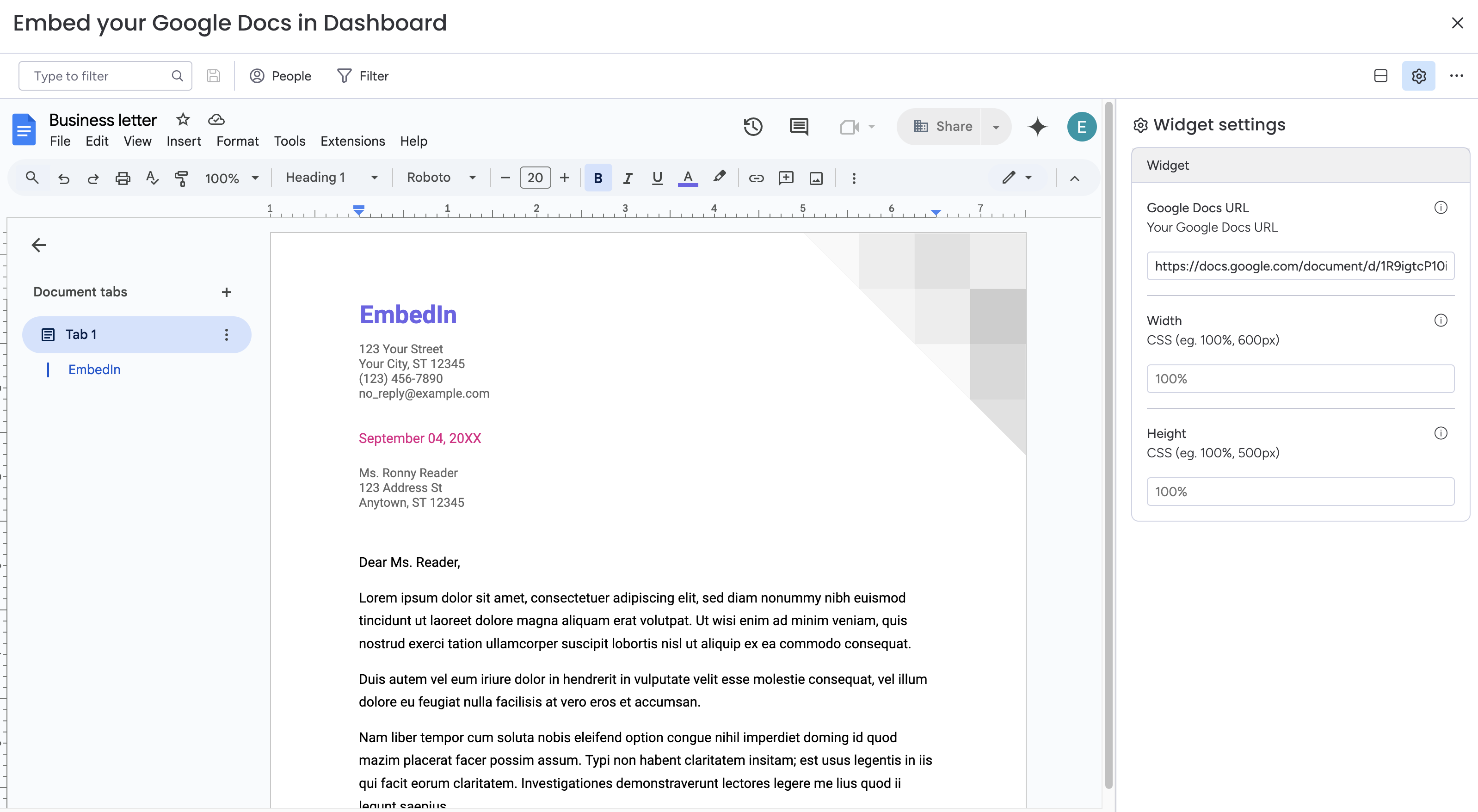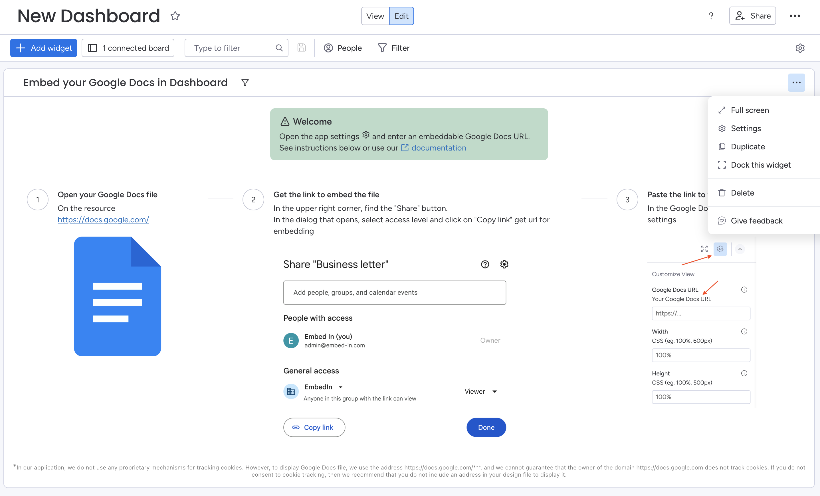 # Embed Google Docs in Dashboard